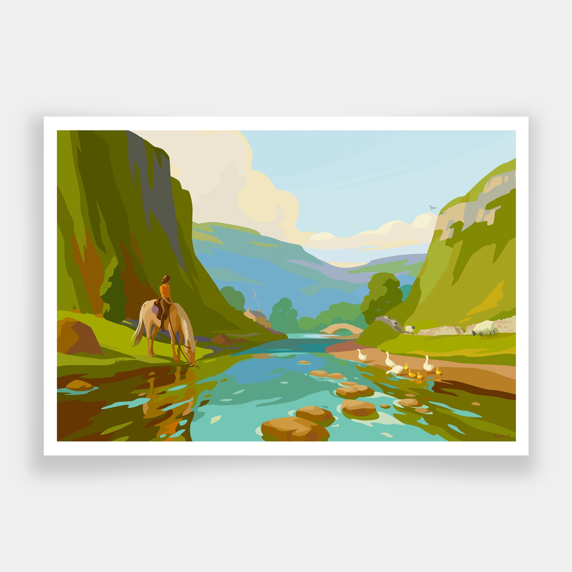 Presented on archival museum quality Giclée paper by Hahnemuhle and available either in an oak frame or as a print only which includes a thin white border ready for framing